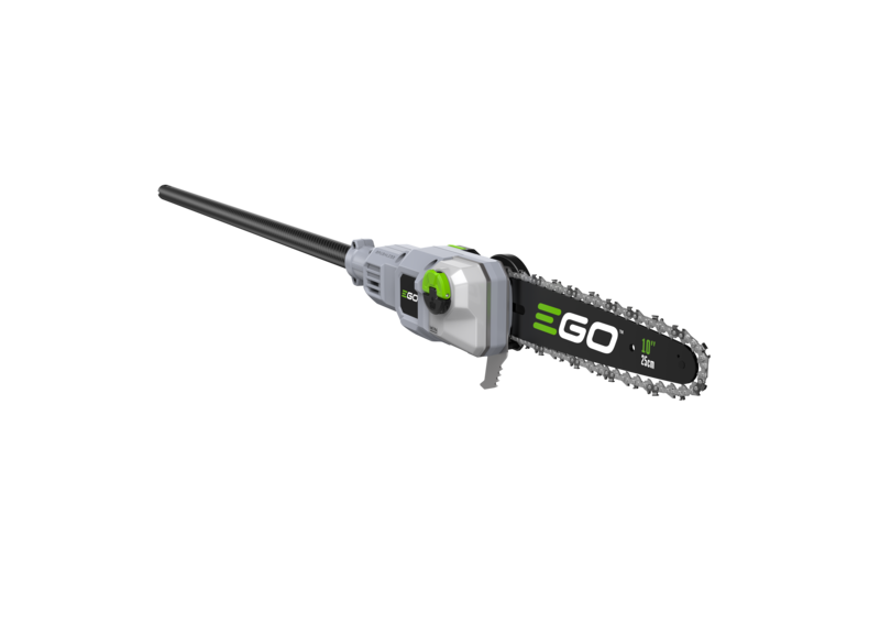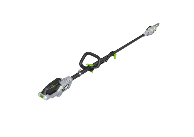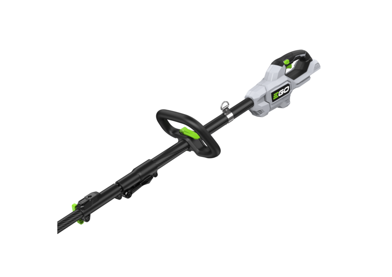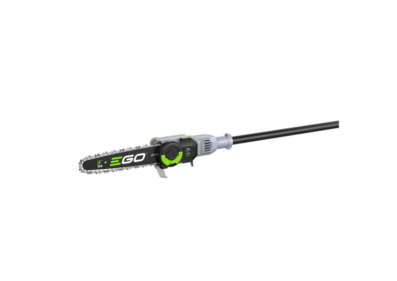 Mit dem EGO Hochentaster gehören Leitern und schwierige Baumpflegearbeiten der Vergangenheit an. Mit einem 25 cm langen Schwert und einer Kettengeschwindigkeit von bis zu 20 m/s, sägt der EGO Hochentaster hohe Äste mit Leichtigkeit. Der Sägekopf und der Schaft sind über einen Kupplungsmechanismus mit der Antriebseinheit verbunden, so dass der Hochentaster auch kompakt verstaut werden kann. Die Teleskopfunktion mit bis zu 4 m Länge erreicht jeden noch so nahen oder entfernten Ast. Der leichte und extrem robuste Carbon-Schaft und die LED-Präszisionsleuchte erleichtern die Werkzeugführung und sorgen für exakte Schnitte.
